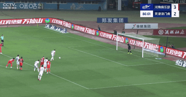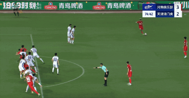 上半场补时阶段,津门虎首发门将方镜淇同样因伤被闫炳良换下,仓促出场的后者上阵即送大礼,解围失误击中纳萨里奥,将球弹进了自家大门——至此,本场顶替王上源出任河南队长的纳萨里奥完成了“另类帽子戏法”,河南队也在半场结束前将比分扳为了2比2平。