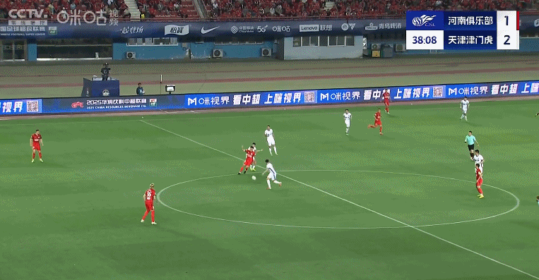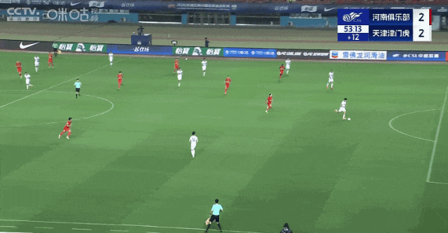 面对津门虎队中的两大进攻点,黄锐烽的任务是将阿代米盯防死,中路的防守球员则是负责基莱斯,在阿代米被替换下场之前,黄锐烽的防守任务是不错的。但另一侧的刘斌比赛战至半小时便出现了左膝伤情,随后被刘易鑫换下。在河南队这次被迫调整发生后不久,何超中圈拿球被断,哈达斯推动反击至禁区弧顶后分边,此前4场未能收获进球的基莱斯打进了个人赛季第8球,在射手榜上重新追平法比奥共同领跑,津门虎则2比1反超了比分。