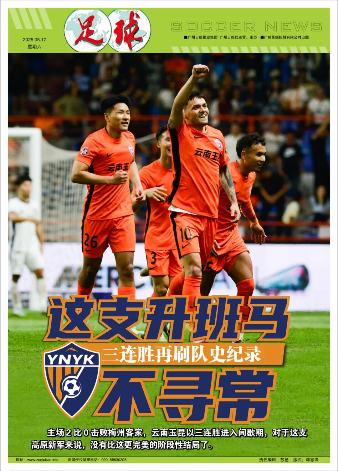 主场2比0击败梅州客家,云南玉昆以队史首次中超三连胜的成绩进入间歇期,对于这支高原新军来说,没有比这更完美的阶段性结局了。