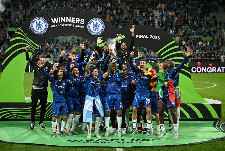 切尔西与意大利教练有不解之缘,蓝军能完成欧战全满贯,都是意大利教练带队夺冠:维亚利(1998年欧洲优胜者杯,欧洲超级杯)、迪马特奥(2012年欧冠)、萨里(2019年欧联杯)和马雷斯卡(2025年欧协杯)。切尔西的蓝色荣耀,与同样蓝色的意大利紧密结合在一起。而且,蓝军欧战决赛胜率奇高,史上8次决赛赢得7次,仅在2008年欧冠决赛点球大战输给曼联。