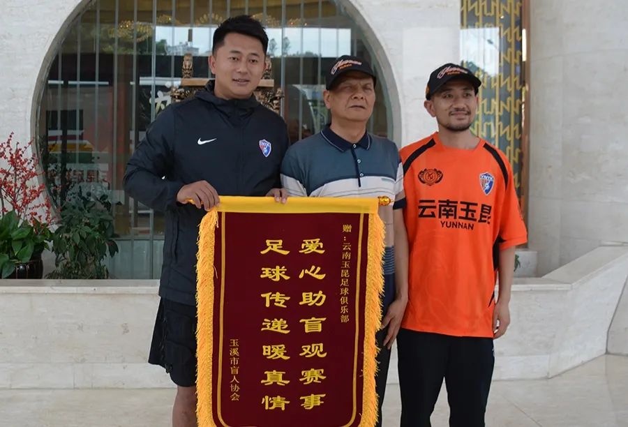 ▲玉昆俱乐部副总顾文祥接受玉溪市盲人协会赠送的锦旗 图/玉溪市融媒体中心