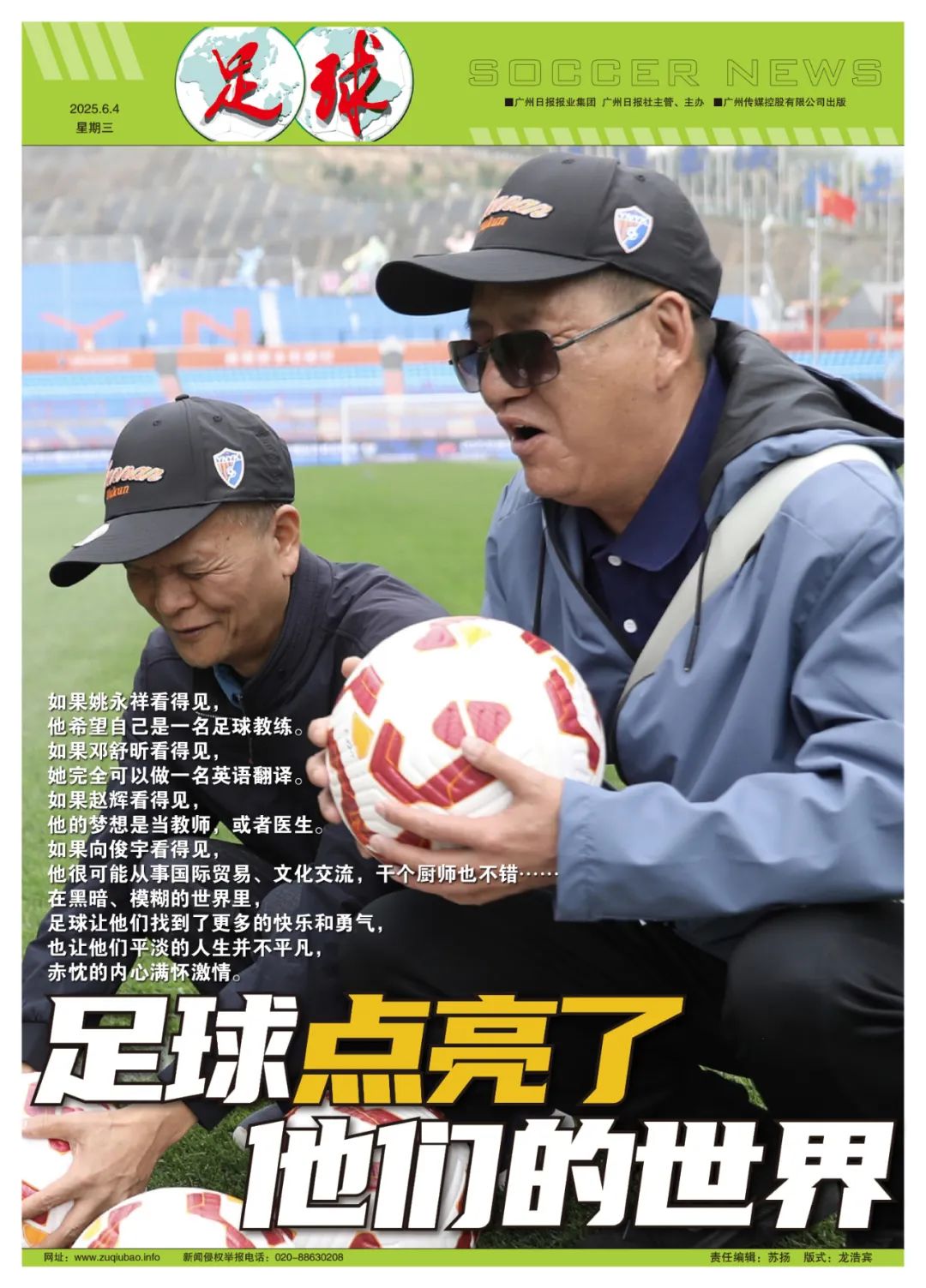 但姚永祥不同意这样的看法,他深信自己感知的足球,和健全人看到的足球“完全一样”。否则你无法解释,他对足球的理解、对比赛的解读,何以能获得那么多球迷的共鸣。