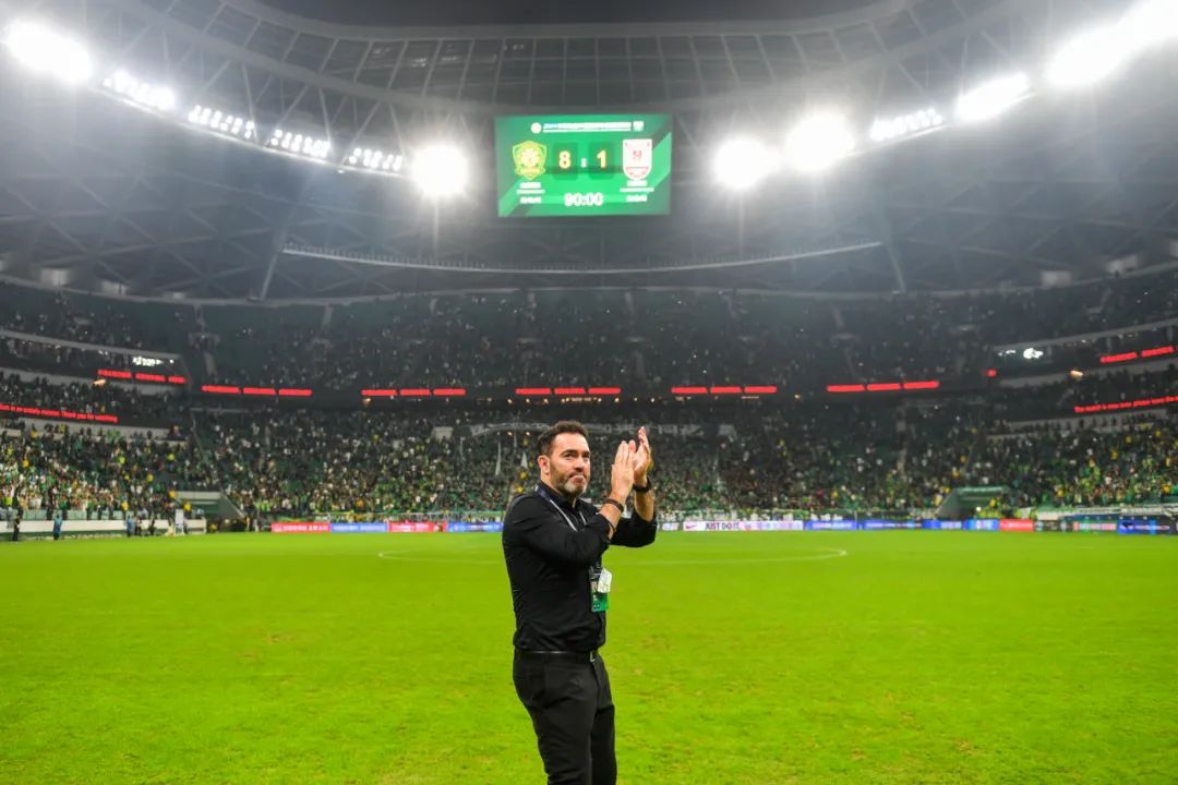 我已经对他表明了态度,接下来我们是对手了。我对他说:师父教会了学生,学生打败老师的一幕将要上演。足球场就是战场,我必须帮助国安队取得胜利,我们绝不允许在主场发生意外。