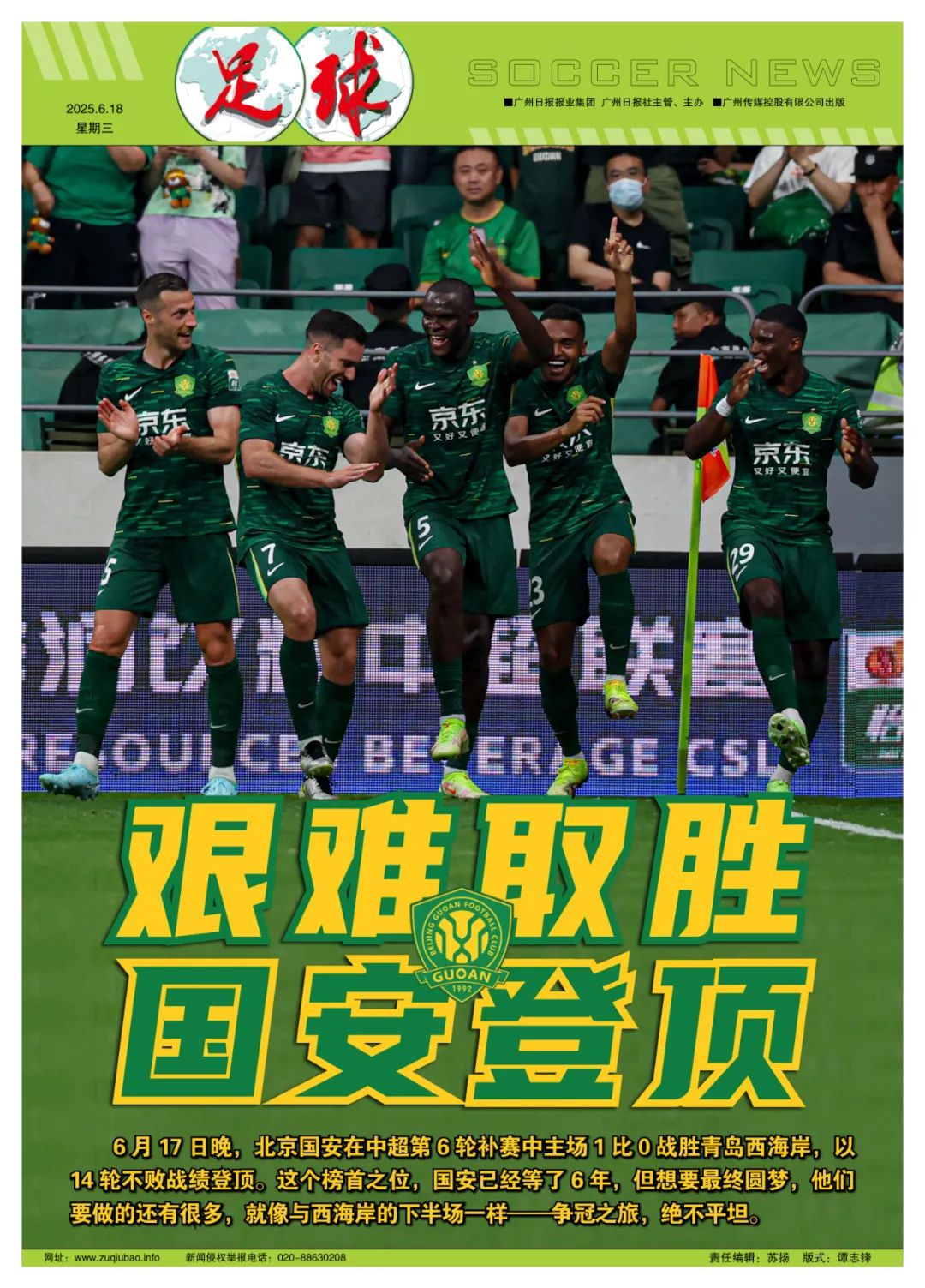 6月17日晚,北京国安在中超第6轮补赛中主场1比0战胜了青岛西海岸,以14轮不败战绩登顶。虽然联赛尚未过半,但这个榜首位置却让国安等了6年。上一次,还是2019年的时候,凭借10连胜曾占据联赛第一的位置,没有人想到,又一次在积分榜领跑,竟然用了如此漫长的时间。但是,但想要最终圆梦,国安要做的还有很多,就像与西海岸的下半场——争冠之旅,绝不平坦。