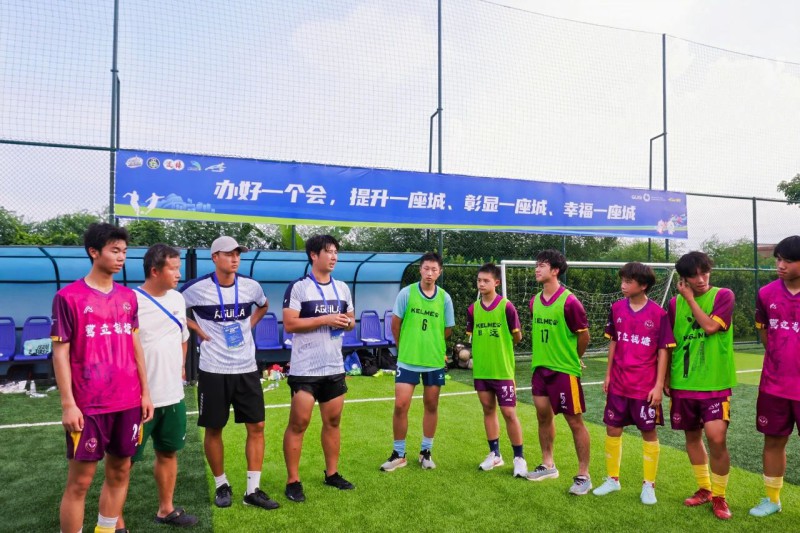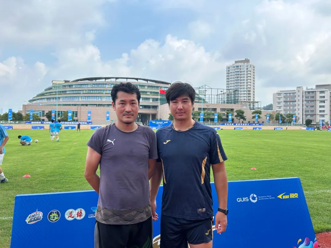 率领杭州高级中学钱塘学校(以下简称杭高钱塘)的队伍出去打比赛,赤塚京介(下图右)已有几个年头,他不会想到,在第二届百年名校杯足球精英交流赛的小组赛首战上,就迎来了一支同样由日本教练挂帅的队伍——横琴粤澳深度合作区港澳生联队。后者的教练羽宫优佑(下图左)在日职联球队大阪樱花从事职业青训工作,这次应邀前来执教横琴粤澳深度合作区港澳生联队,他和队伍只简短磨合了不到一个礼拜。