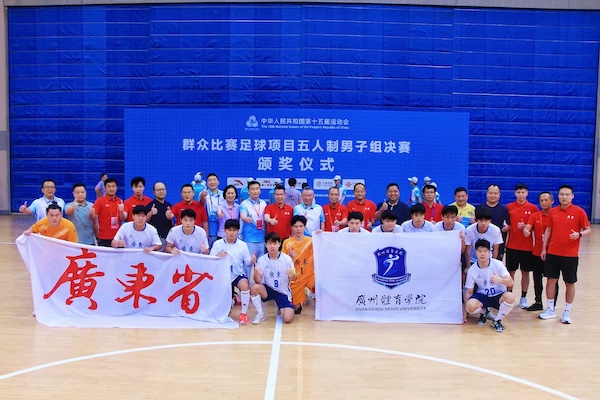 在今年第十五届全运会群众比赛足球项目的赛场上,广东队七人制男子甲组、老将组;五人制足球男子甲组、乙组、老将组共计斩获五枚金牌,整体成绩超越上届。其中,广州体育学院(下称广体)分别组建了七人制男子老将组和五人制男、女子甲组队伍,代表广东省参赛,勇夺两枚金牌,交出了一份耀眼的答卷。广体足球学院作为《中国足球改革发展总体方案》颁布后成立的全国首家足球学院,在广东省教育厅的大力支持与悉心指导下,始终以“扬南派足球文化,育中国足球人才”为己任,拼搏进取、锐意改革。其中,足球学院教师张智,不仅是广东省全运会群众足球项目选拔集训队总教练,而且分别担任五人制足球男子甲组、乙组两个组别广东队主教练,同时他也是七人制男子老将组广东队队员,他代表广东队以主教练和队员不同身份获得第十五届全运会群众比赛足球项目三枚金牌。