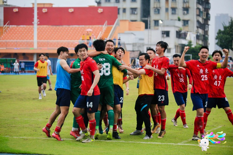 5月29日下午,十五运会群众比赛足球项目七人制男子甲组冠军争夺战在佛山市三水区云秀山体育场打响,经过激烈角逐,广东队通过点球大战以6比5战胜新疆生产建设兵团代表队(常规时间1比1),获得冠军。这也是广东足球在本届全运会上收获的首枚金牌。