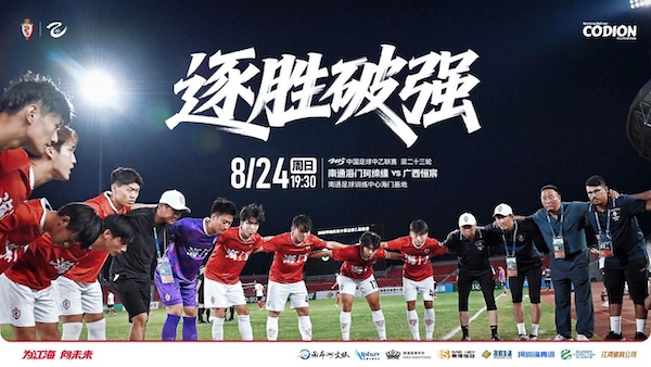 中乙冲甲组榜首球队广西恒宸的比赛在昨晚进行,客场对阵海门珂缔缘。本场比赛,海门珂缔缘第7分钟由王博文率先进球,比赛第33分钟和第37分钟,费尔南多连入两球帮助广西恒宸反超比赛,宁伟辰再入一球将比分改写为3比1,比赛第41分钟,海门珂缔缘由裴国光扳回一球。