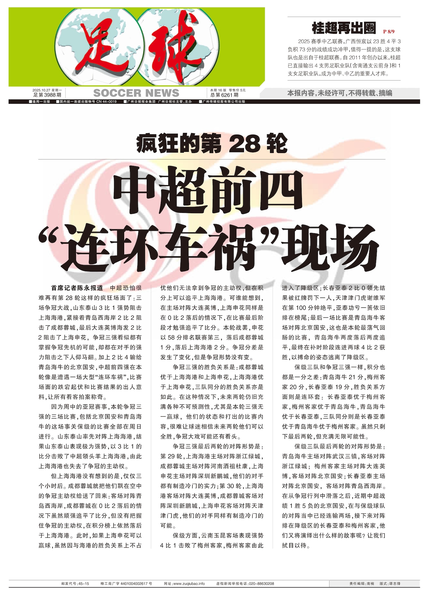中超联赛进行到了第28轮,争冠序列的竞争愈演愈烈,在26日早些时候结束的山东泰山对阵上海海港的比赛中...
