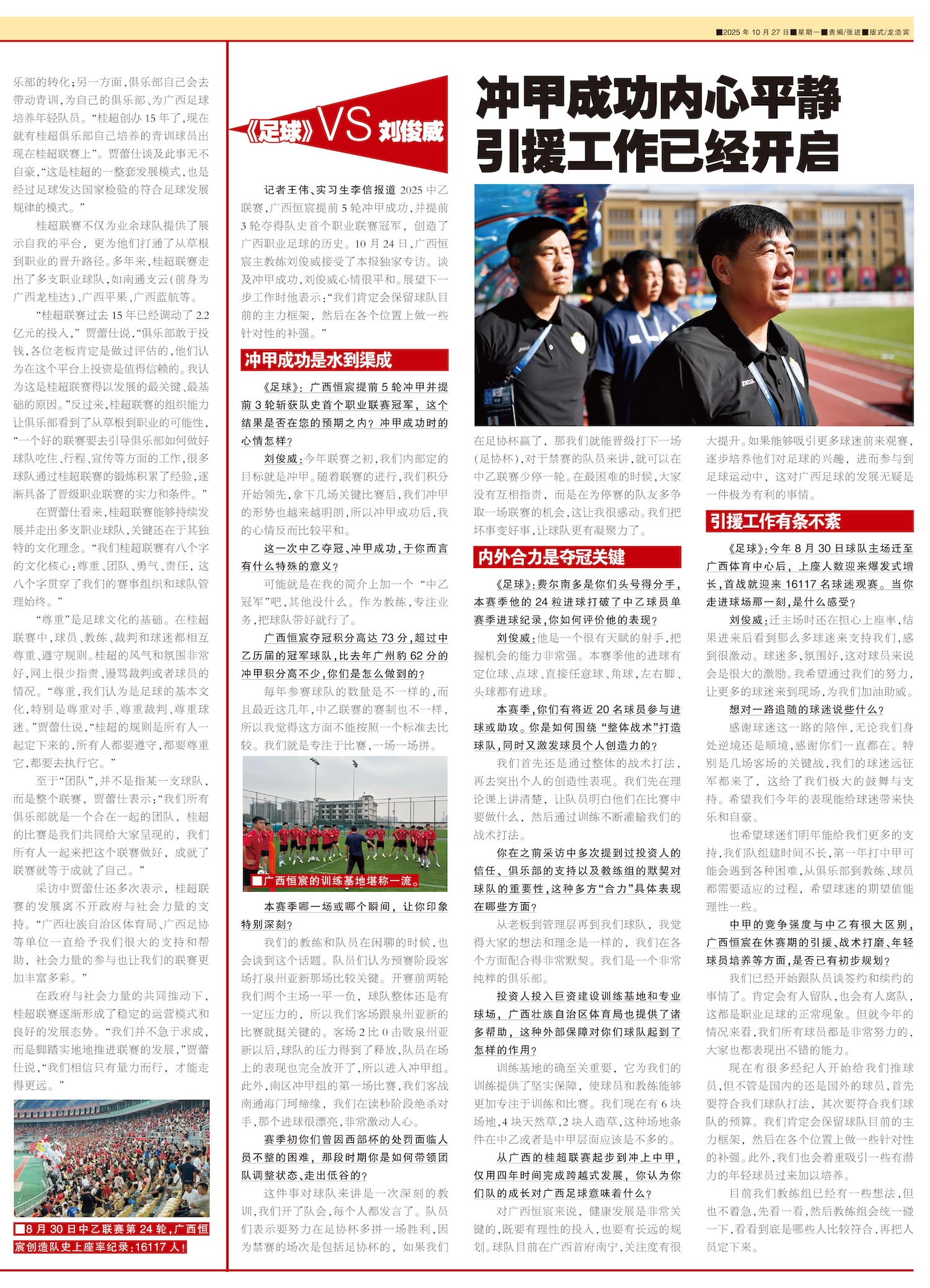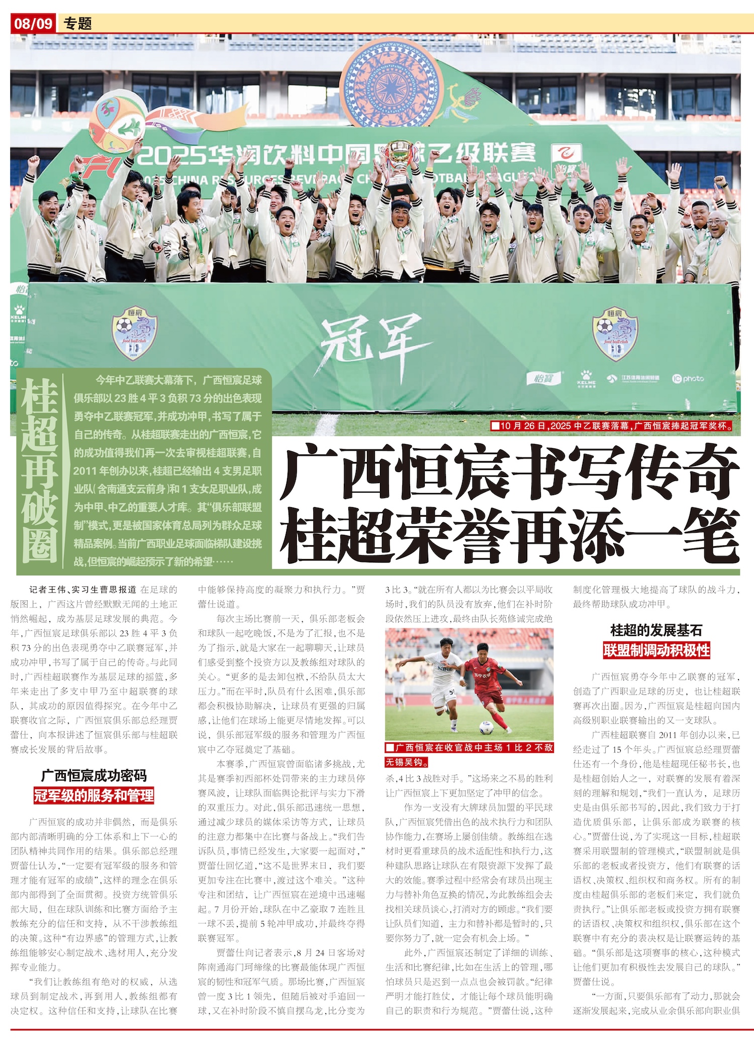 2025中乙联赛,广西恒宸提前5轮冲甲成功,并提前3轮夺得队史首个职业联赛冠军,创造了广西职业足球的...