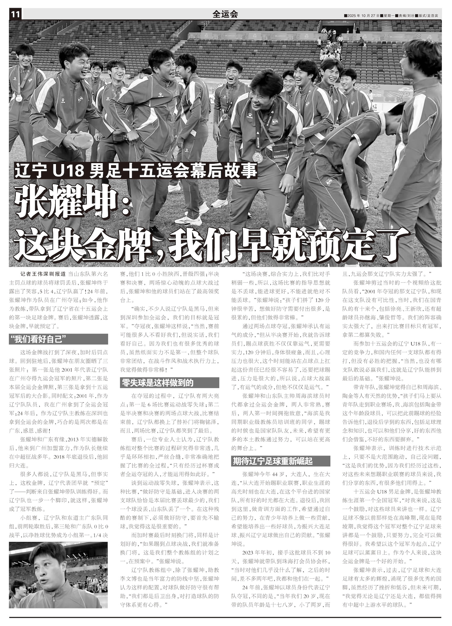 10月25日,第十五届全运会足球男子U18组决赛落幕,辽宁队获得了最终的冠军,至此全运会男子三项足球...