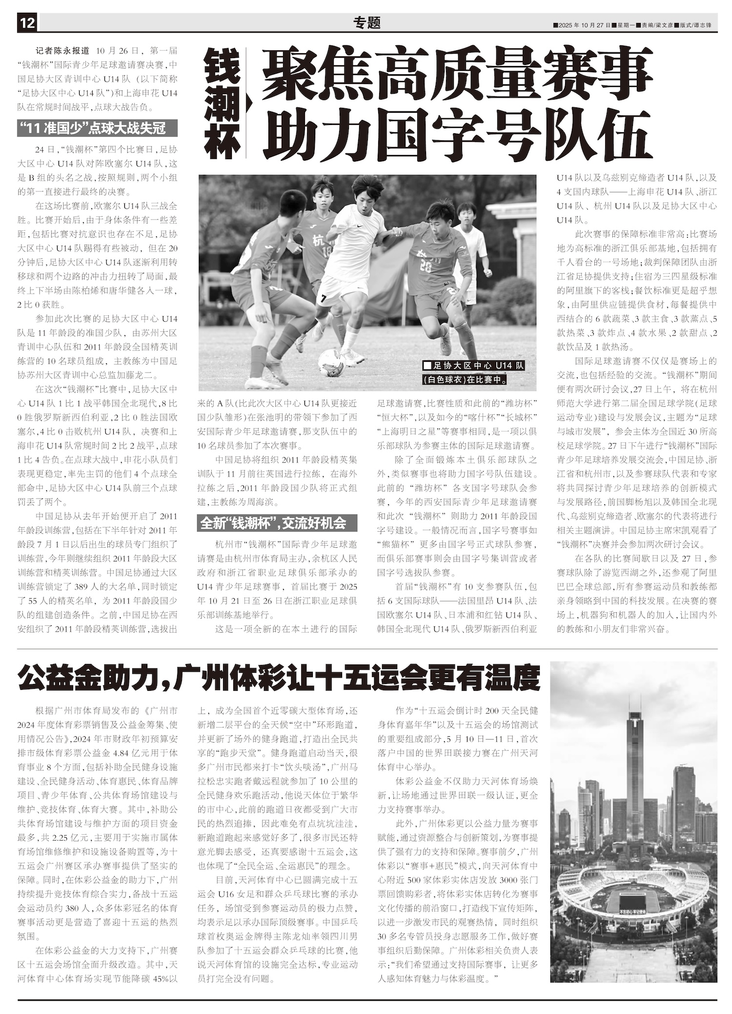 10月26日,第一届“钱潮杯”国际青少年足球邀请赛决赛,中国足协大区青训中心U14队(以下简称“足协...