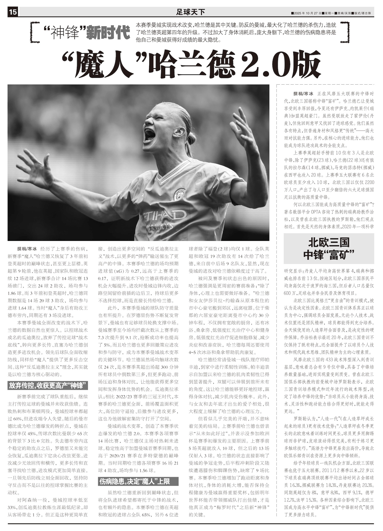 “神锋”新时代本赛季曼城实现战术改变,哈兰德是其中关键。防反的曼城,最大化了哈兰德的杀伤力,造就了哈...
