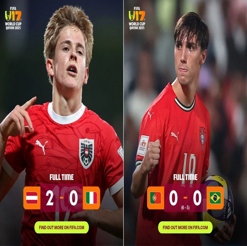 11月24日,U17世界杯半决赛战罢。奥地利U17国少队凭借最佳射手莫塞梅开二度,击败意大利U17;葡萄牙U17国少队则通过大战,淘汰四届U17世界杯冠军得主巴西U17——两支从未进入赛事决赛的球队,将让U17世界杯诞生全新的冠军。同时,这也将是1985年U17世界杯前身U16世少赛在中国创办以来,这项最低龄世界大赛诞生的第11个冠军得主。