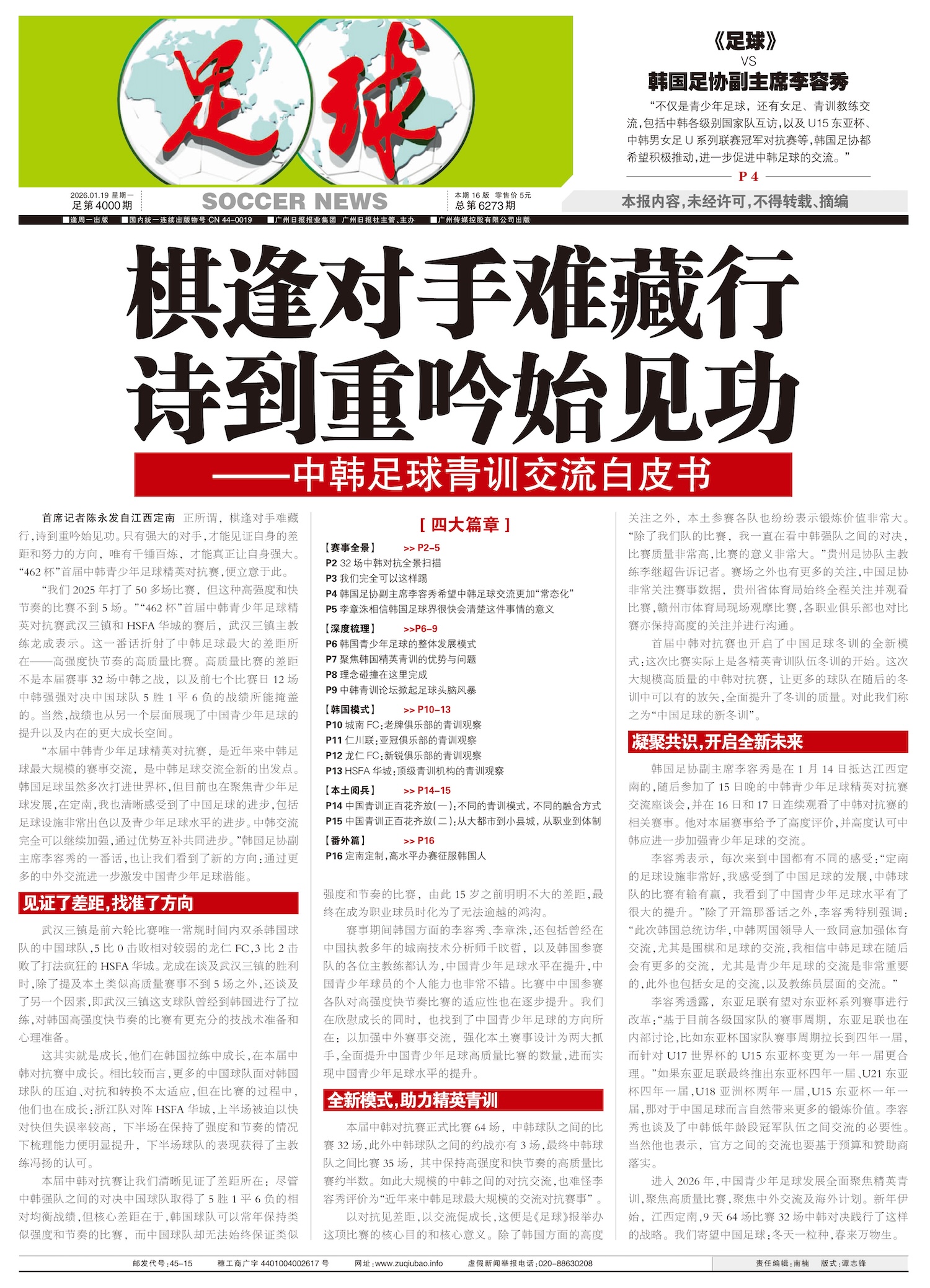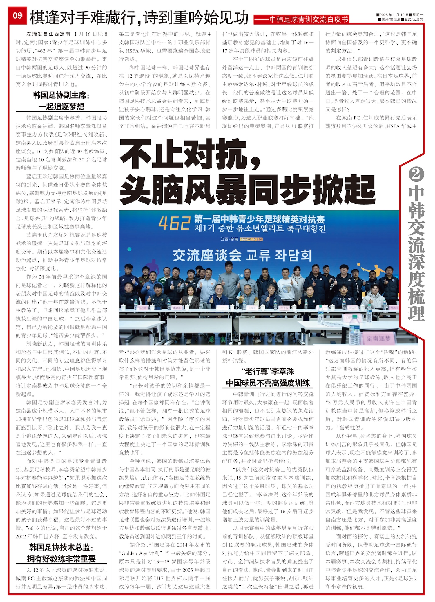 棋逢对手难藏行 诗到重吟始见功 ——中韩足球青训交流白皮书