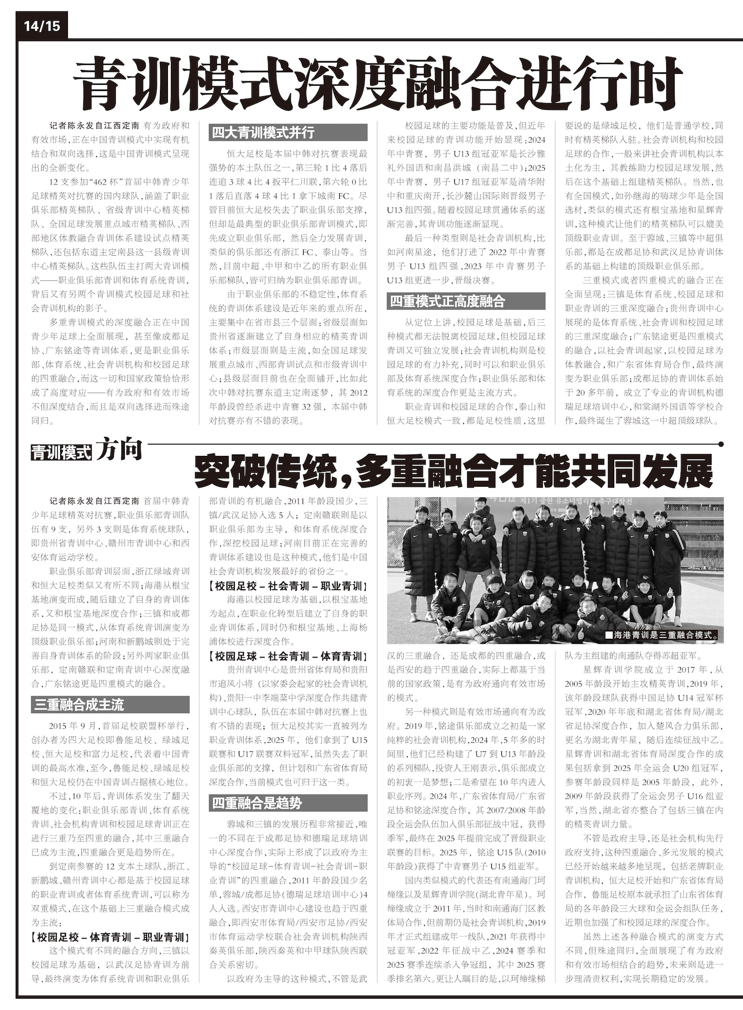 有为政府和有效市场,正在中国青训模式中实现有机结合和双向选择,这是中国青训模式呈现出的全新变化。