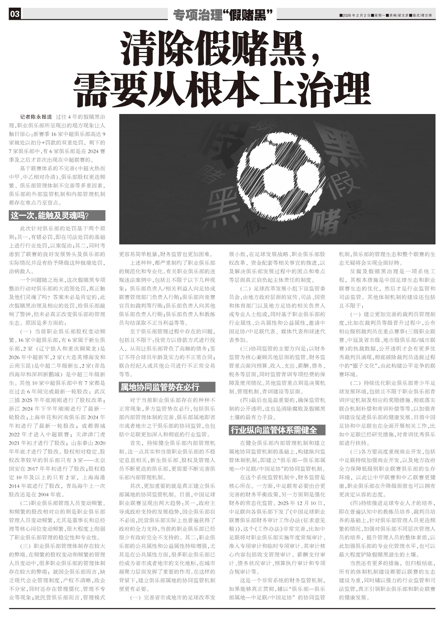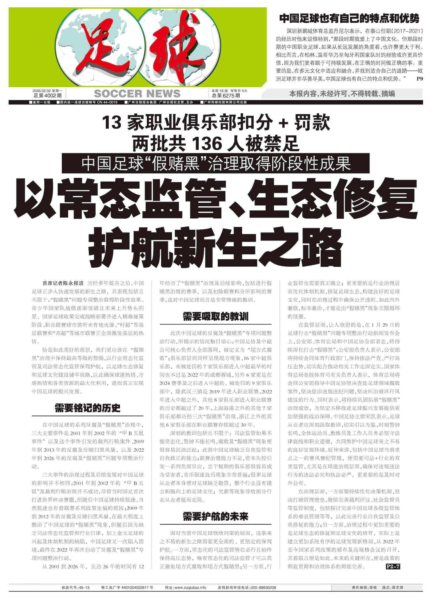 13家职业俱乐部扣分+罚款 两批共136人被禁足 中国足球“假赌黑”治理取得阶段性成果 以常态监管、生态修复护航新生之路