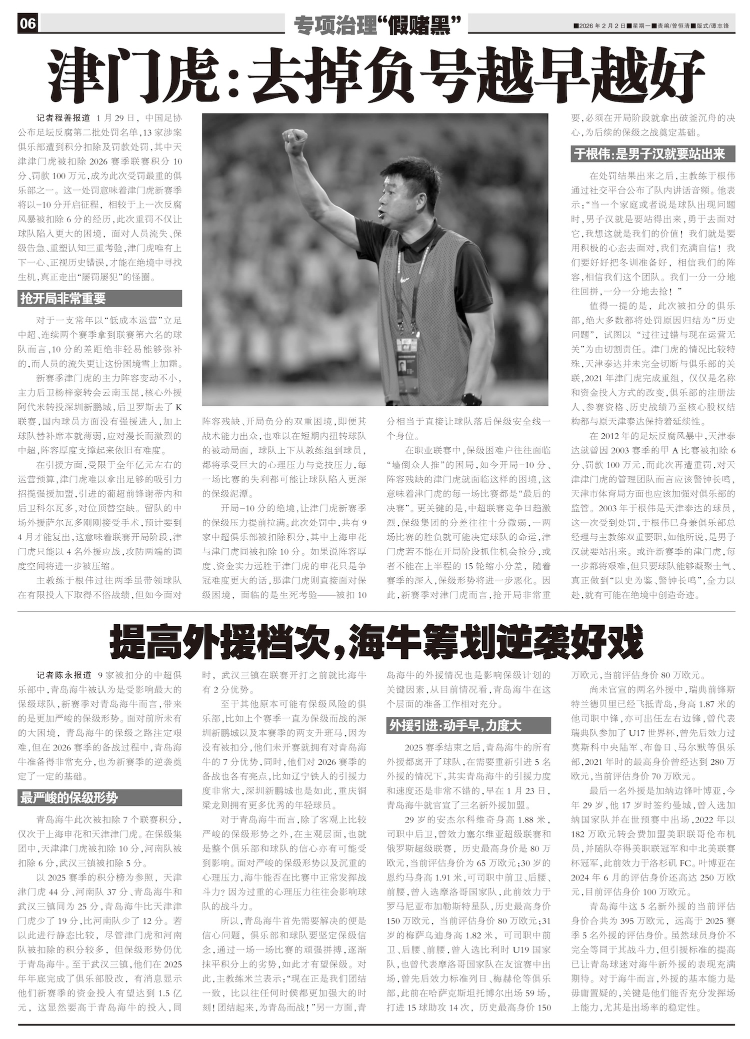 1月29日,中国足协公布足坛反腐第二批处罚名单,13家涉案俱乐部遭到积分扣除及罚款处罚,其中天津津门...