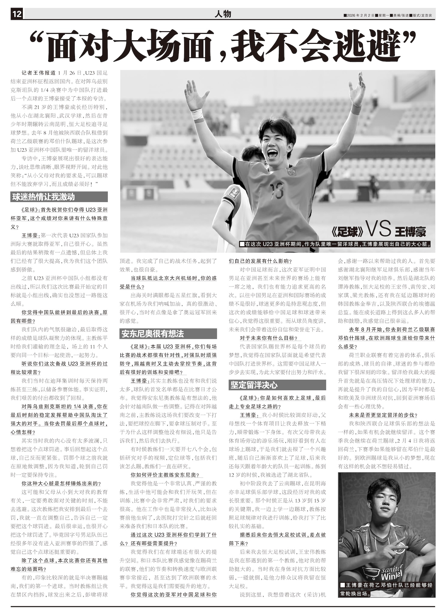 《足球》VS 王博豪 “面对大场面,我不会逃避”