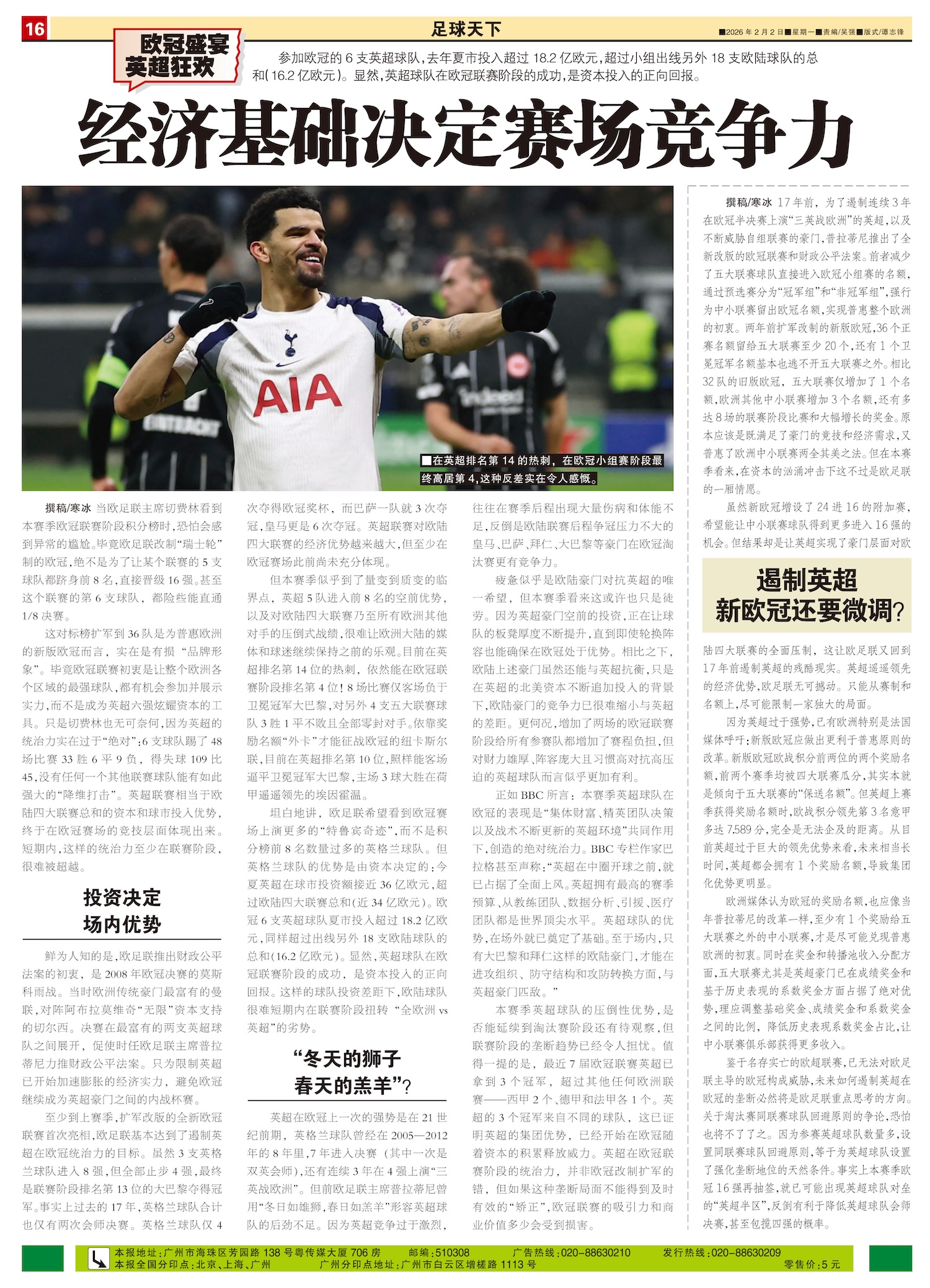 欧冠盛宴 英超狂欢参加欧冠的6支英超球队,去年夏市投入超过18.2亿欧元,超过小组出线另外18支欧...