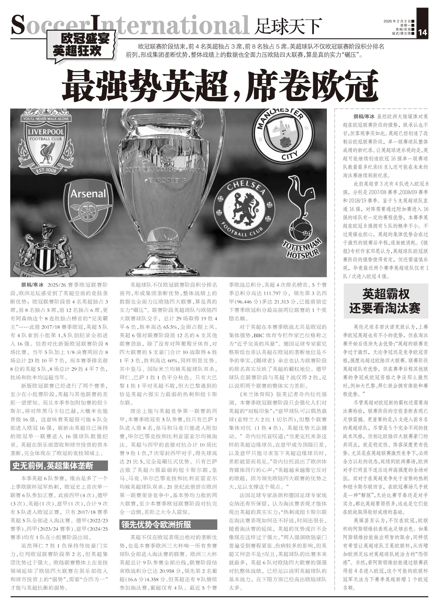虽然欧洲大陆媒体对英超在欧冠联赛阶段的强势,既承认也不甘,但客观事实如此。英超已经创造了改制后欧冠联...