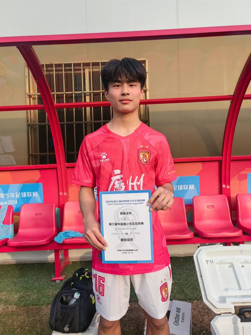 杨黔东是恒大足校培养的2008年龄段的优秀学员之一,于2017年进入恒大足校学习,杨黔东曾经多次入选U15、U16、U17各级国字号球队,参加过2023年东亚足联U15锦标赛,去年代表中国U17男足参加了2025年亚足联U17亚洲杯预选赛,获得出场机会。