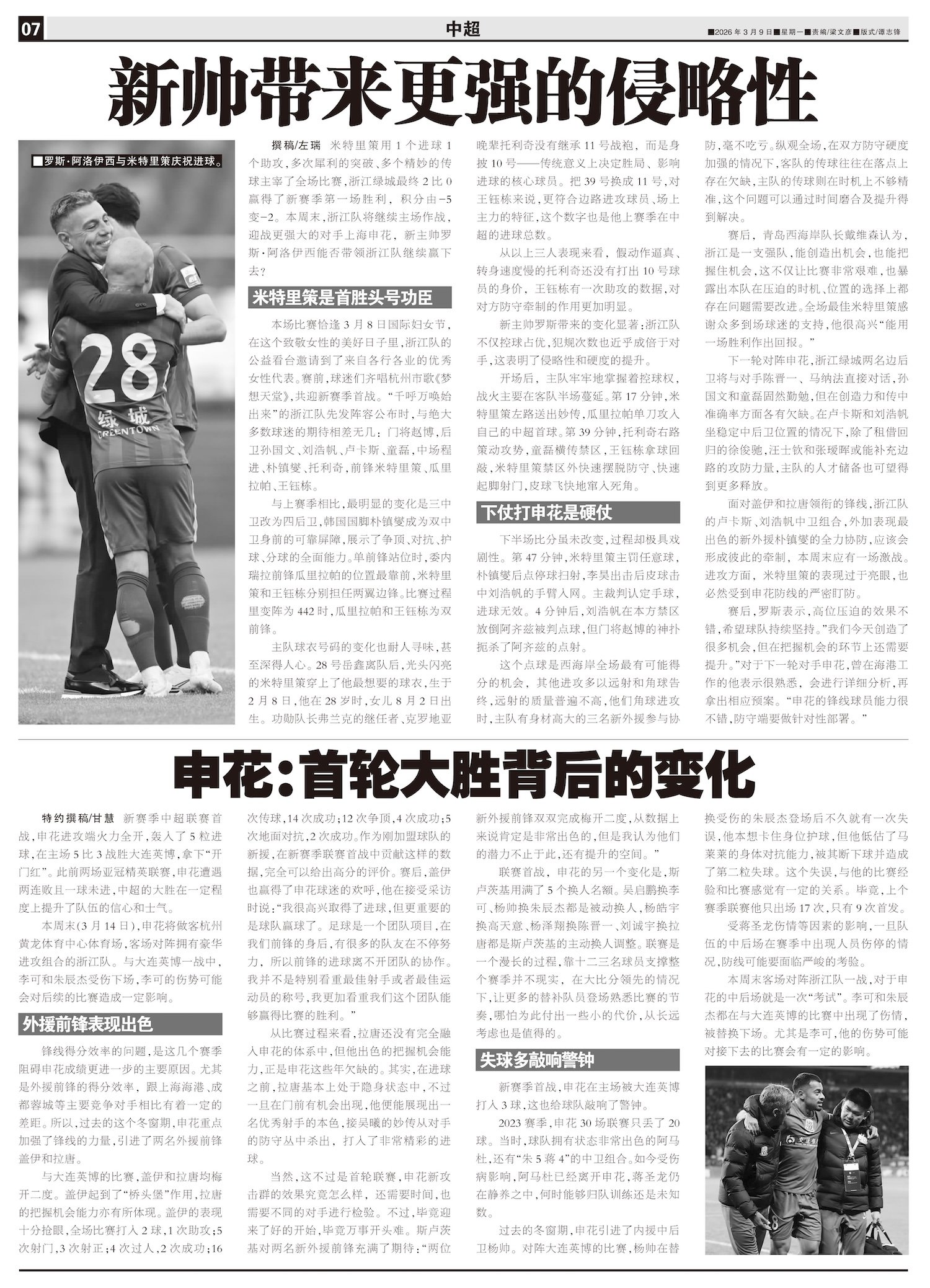 新赛季中超联赛首战,申花进攻端火力全开,轰入了5粒进球,在主场5比3战胜大连英博,拿下“开门红”。此...