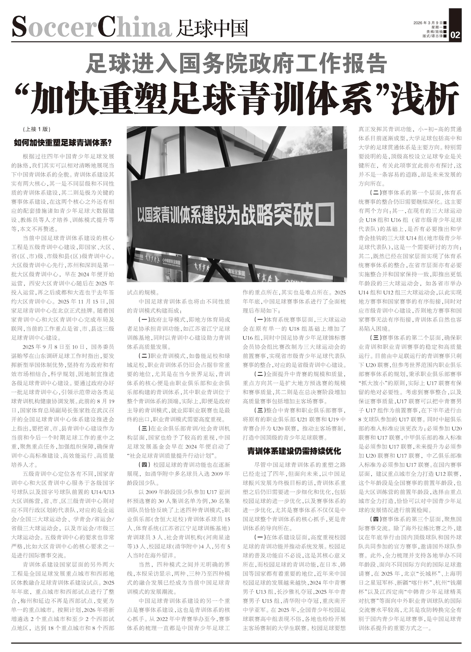 足球进入国务院政府工作报告 “加快重塑足球青训体系”浅析