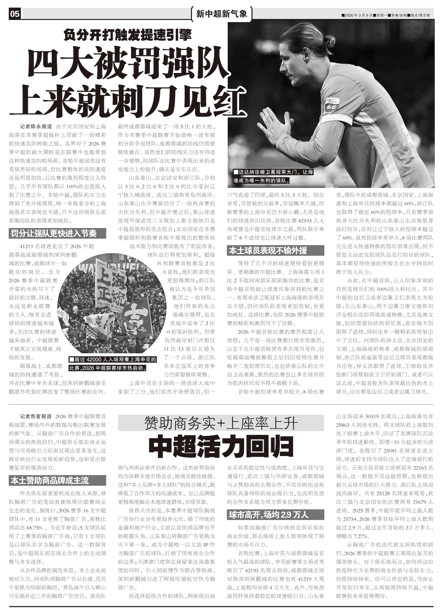 2026赛季中超首轮落幕,因为9支球队遭遇扣分处罚,联赛格局也发生巨大变化。也因为此,进球大战闪现,...