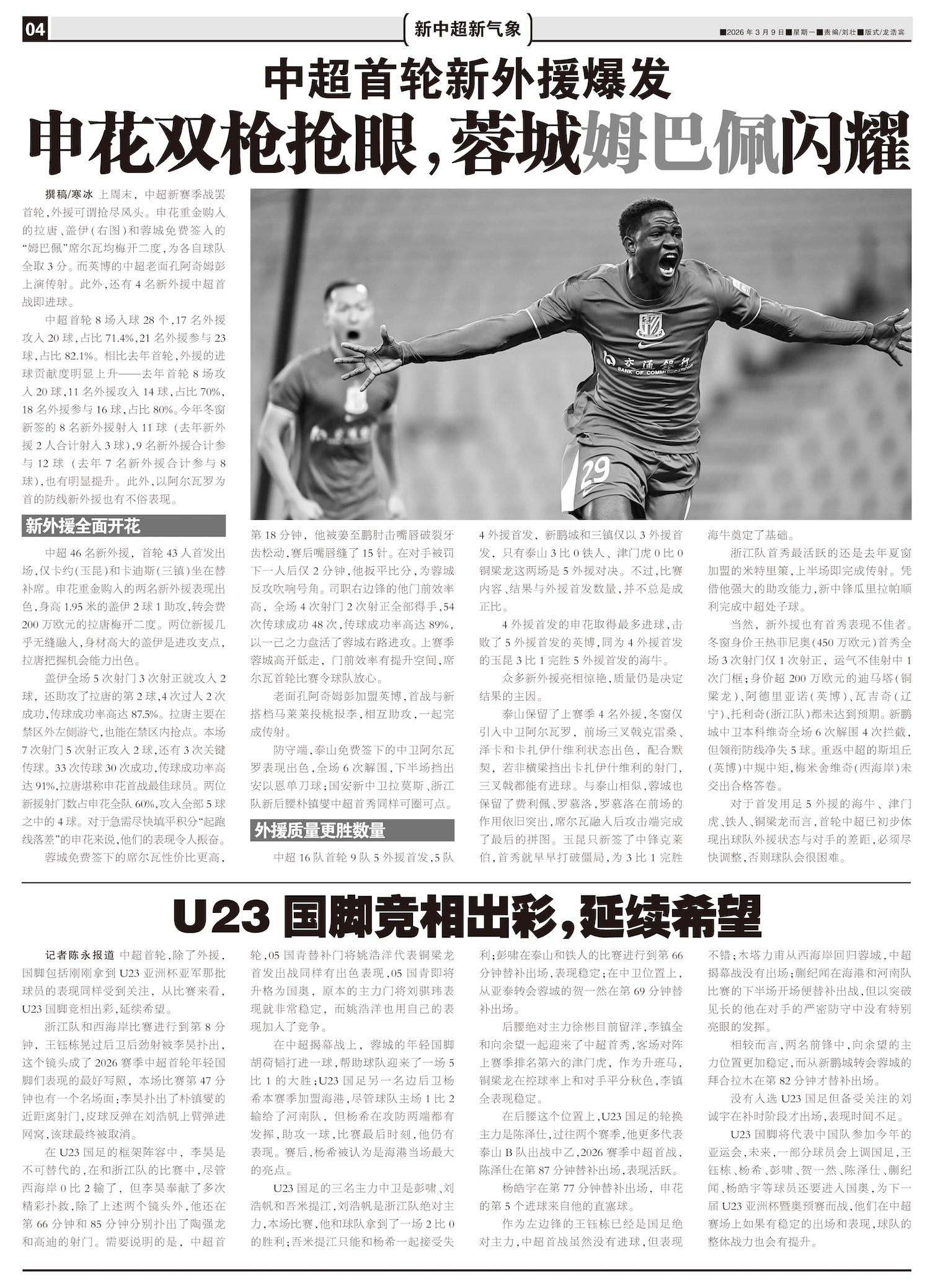 中超首轮新外援爆发 申花双枪抢眼,蓉城姆巴佩闪耀