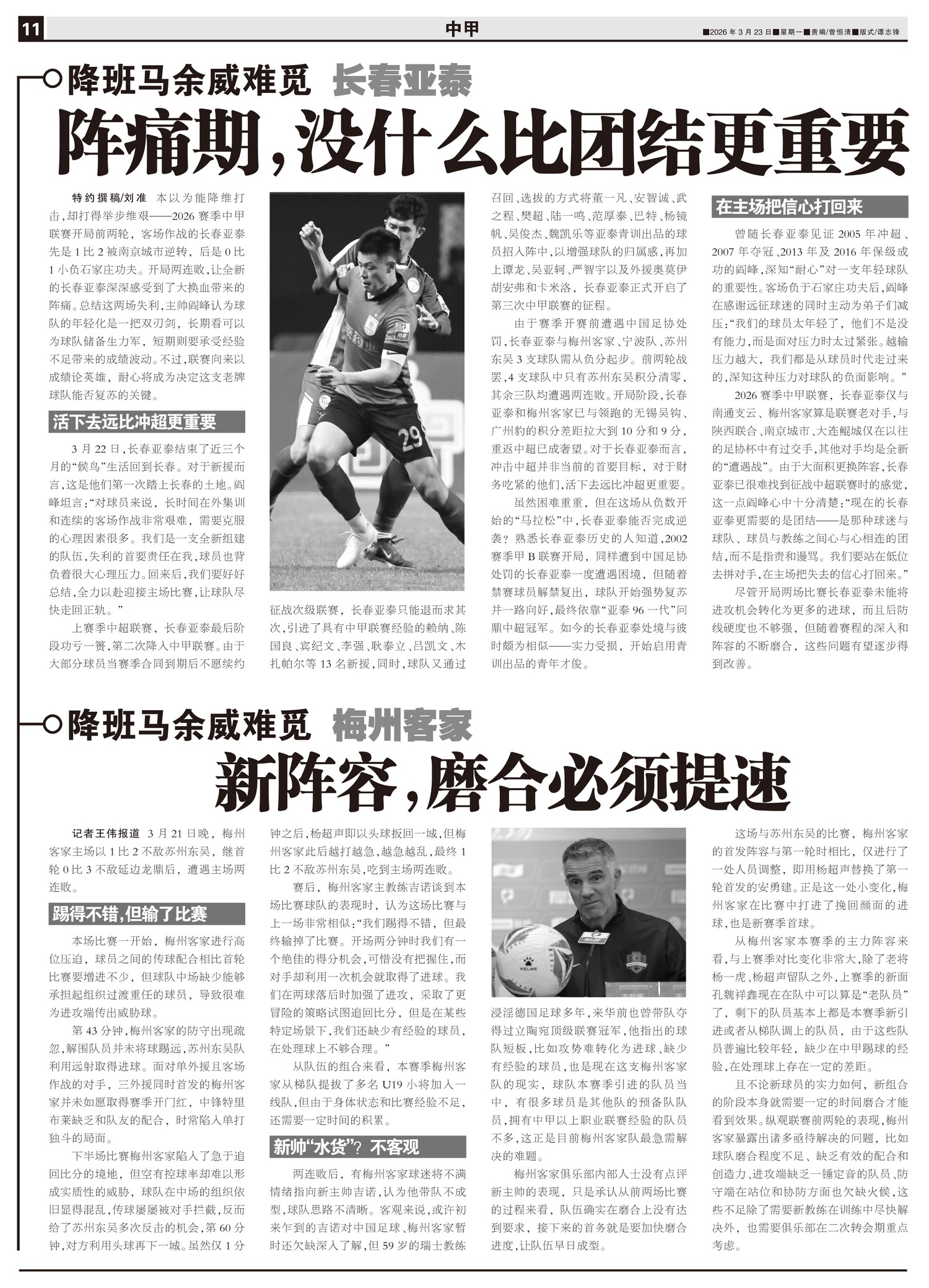 降班马余威难觅 长春亚泰 阵痛期,没什么比团结更重要