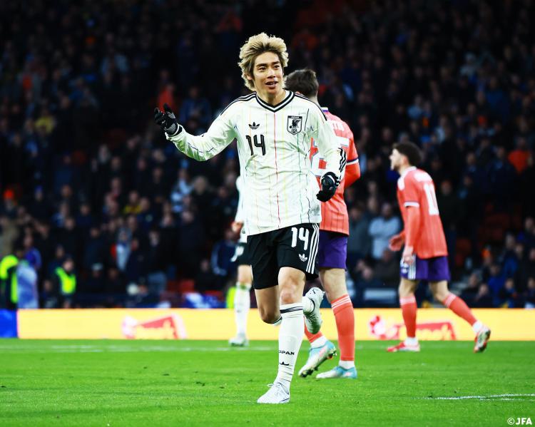 日本队在格拉斯哥对阵苏格兰一役,尽管首发并非全主力,三笘薫、堂安律、伊东纯也、上田绮世均在替补席,森保一下半场换足10人,但日本队仍然占据全面优势。射门数(18比8)、射正(7比3),角球(8比3)全面领先,最终依靠第84分钟伊东纯也的进球绝杀苏格兰。去年10月至今日本队热身4连胜,对手包括巴西、加纳和苏格兰3支世界杯出线队。