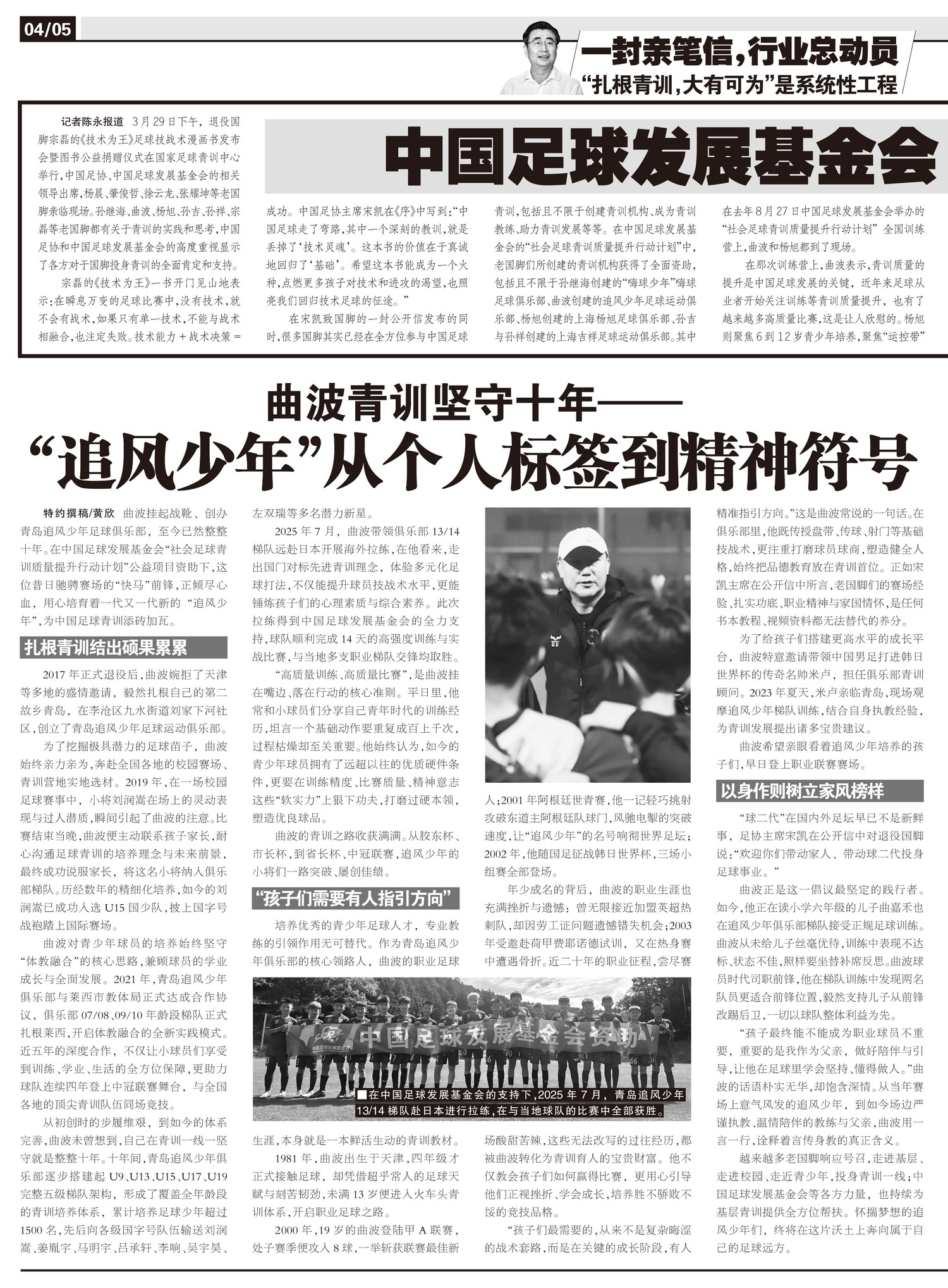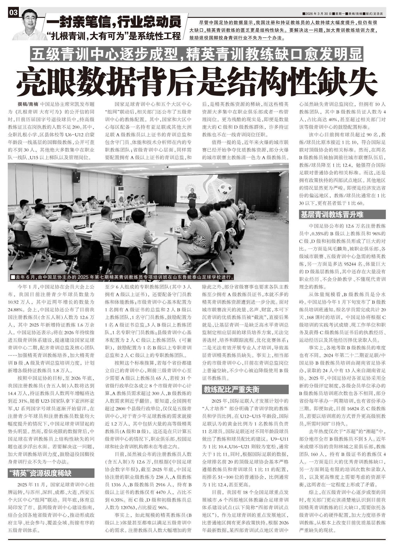 2025年1月构思,2026年3月成文,“扎根青训,大有所为”这封公开信,是中国足协主席宋凯自上任以...