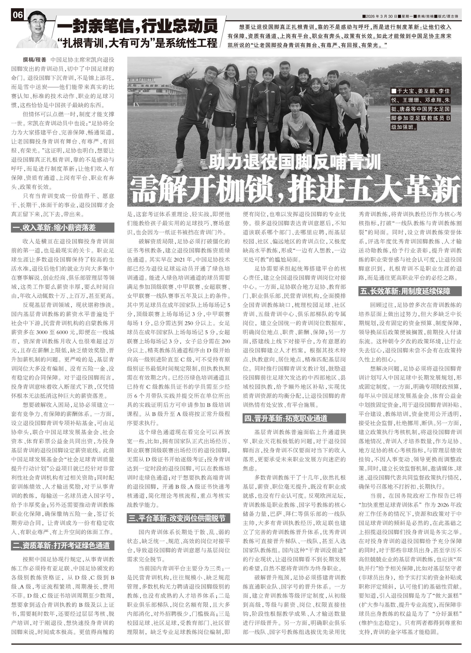 助力退役国脚反哺青训 需解开枷锁,推进五大革新