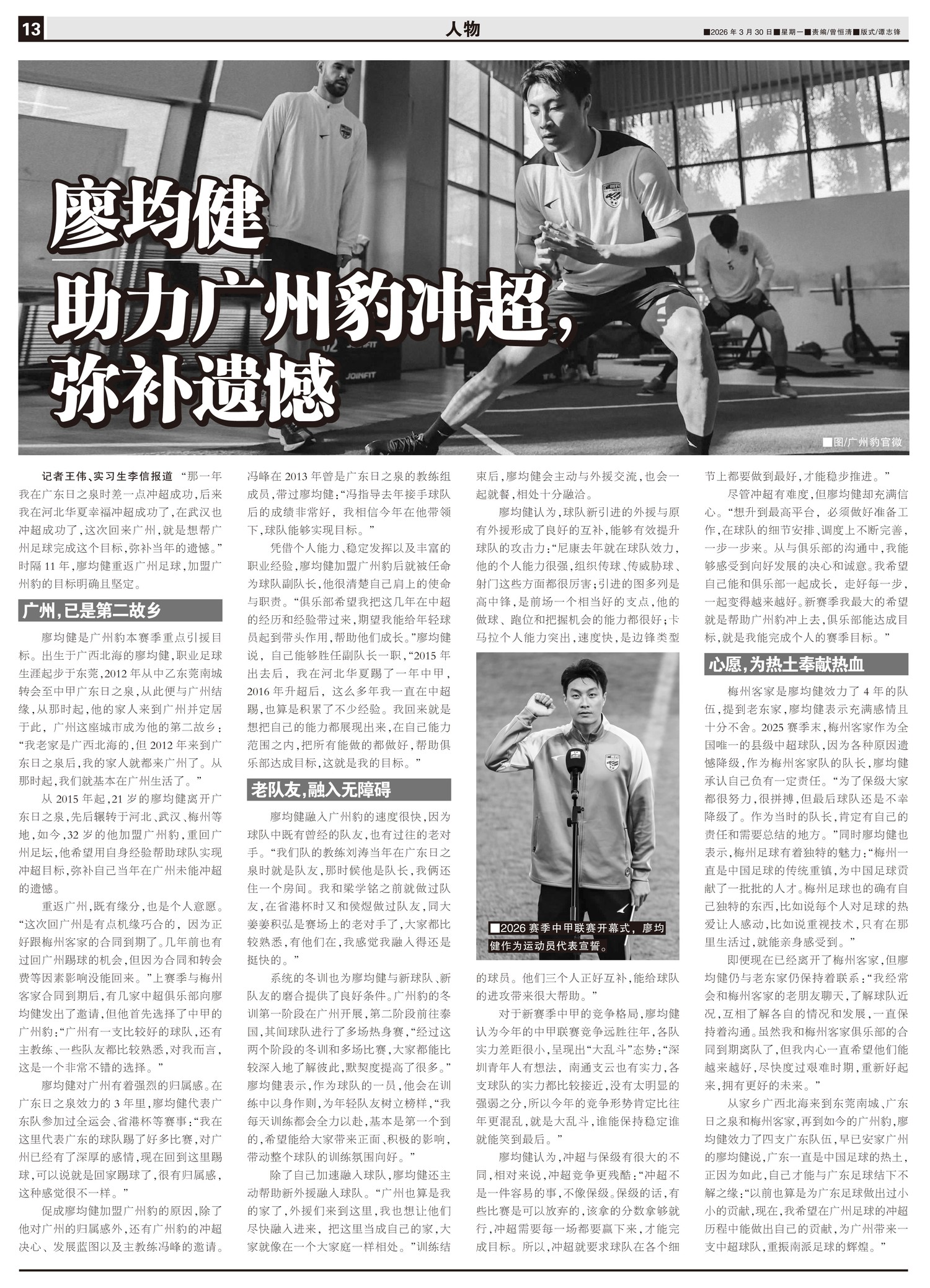 廖均健 助力广州豹冲超,弥补遗憾