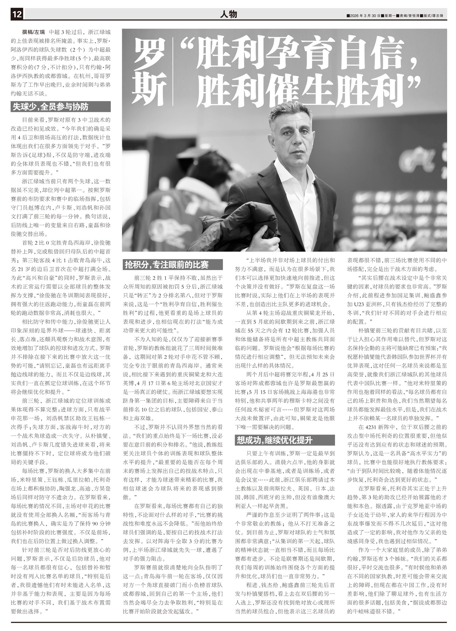 中超3轮过后,浙江绿城的上佳表现被排名所掩盖。事实上,罗斯·阿洛伊西的球队失球数(2个)为中超最少,...