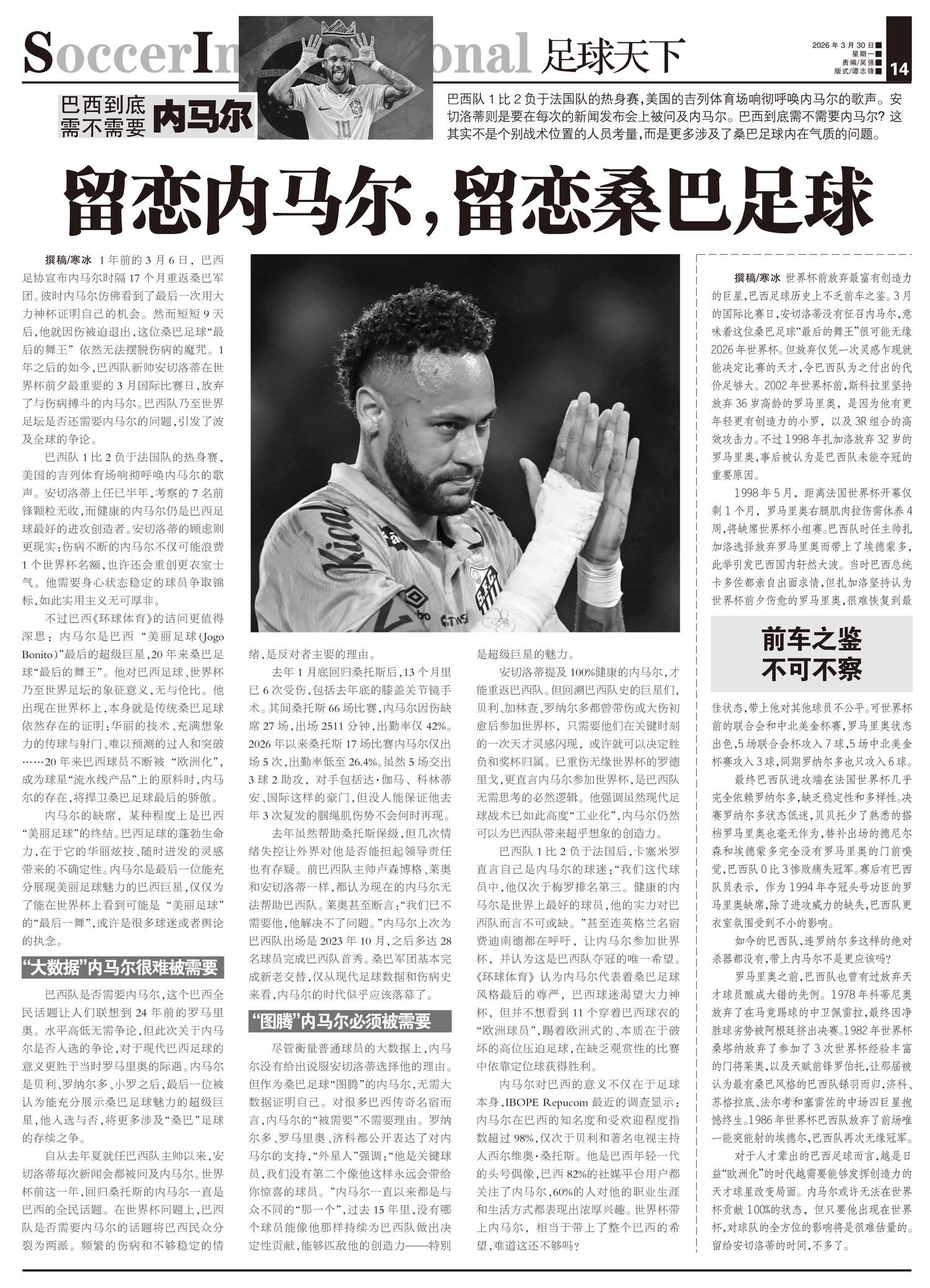 巴西到底需不需要内马尔巴西队1比2负于法国队的热身赛,美国的吉列体育场响彻呼唤内马尔的歌声。安切洛蒂...