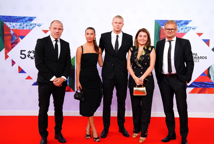 在最基本的竞技方面,父亲阿尔菲从儿子10多岁时,就与拉伊奥拉达成全面协议,精心策划儿子足球生涯的每一步。他与已故的拉伊奥拉和接替者皮门塔,让哈兰德的4次转会都成为时机恰好的职业生涯跳板。2023年夏他为避税搬到瑞士,但依旧是哈兰德在竞技和心理层面最重要的“指导者”,以及所有重大事务的决策者。