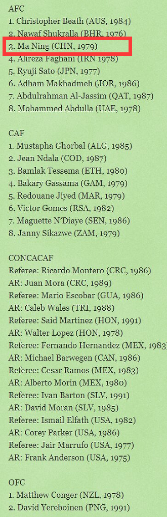 明年世界杯,由于在亚洲举行,理论上,亚足联拿到的裁判名额,应该不会少于6个。