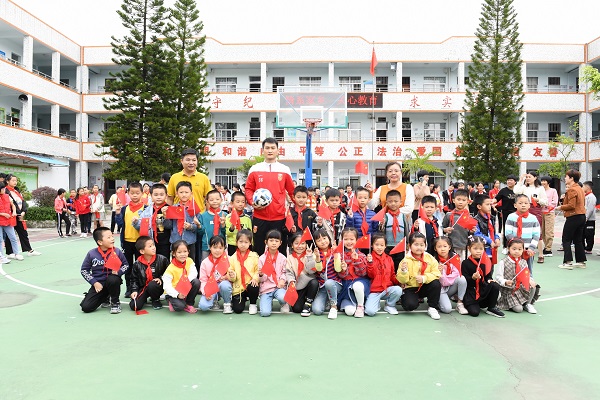 “廖叔叔,您可以教我们踢球吗?”几个带着红领巾的孩子问廖力生。10月25日,广州队球员廖力生和家人一起来到位于广东揭阳市揭西县金和镇和南小学,与孩子们一起互动交流,孩子们希望廖力生能够亲自教他们踢球的动作要领。