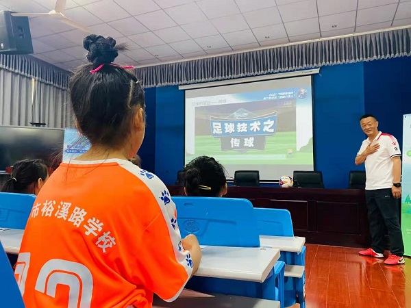 2021年6月份毕业之后,张剑的女儿回到了裕溪路学校,和父亲成了同事,也造就了一段“女承父业”的佳话。记者前往学校采访的时候,张剑的女儿正在带训练,一群队员在她的带领下,体验足球给她们带来的快乐。