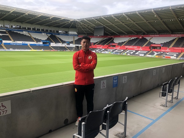 2019年6月,李天宇和全国其他56位出色的校园足球老师一起前往斯旺西城,学习欧洲先进的足球理念。在英国,他们去了斯旺西俱乐部,也去了斯旺西大学。每天的课程都采用实践和理论相结合的方式。“那边的足球氛围很好,孩子小时候都是以快乐足球为主,家长也都支持孩子踢球。”