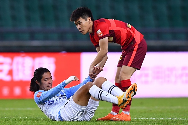 广州城出场阵容(532):韩佳奇/韩鹏飞、弋腾、姜积弘、杨笑天、王华鹏/黄政宇、李提香、陈俊乐(43’张功)/蒂亚戈、卡尔多纳