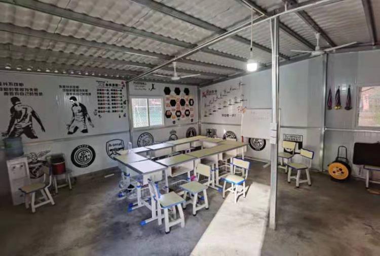 另外,球场边还有一间多功能更衣室,一方面学生训练前可以在里面更换装备,另外这里也是奖杯陈列室以及足球理论教学教室,教练经常给孩子们回看录像、分析视频。在学校里给足球队配备更衣室,这在昆明所有小学中也是独一份。