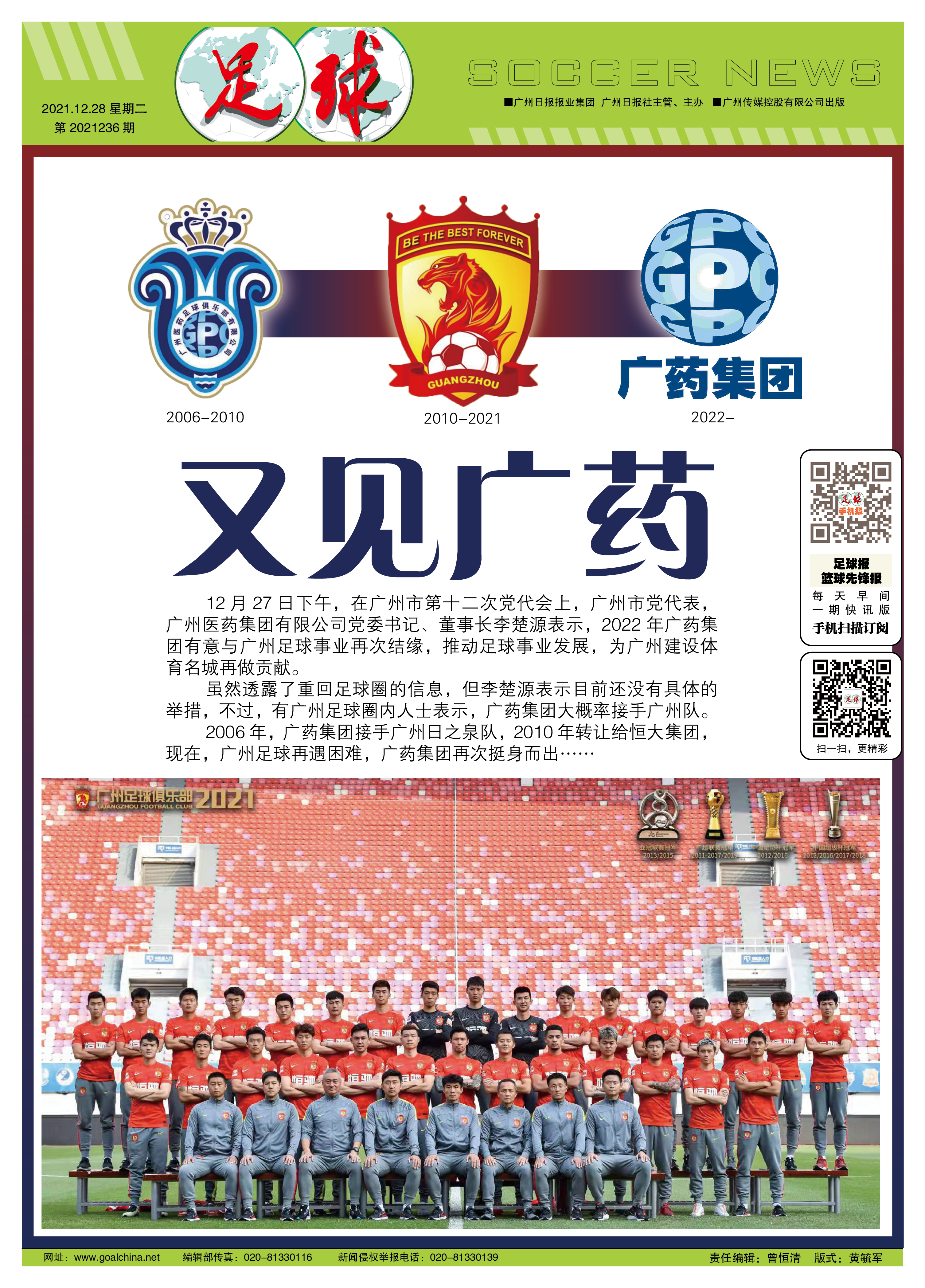 12月27日晚,当广药集团有意接手广州队的消息传出后,广州足球圈的人都在不同平台上感慨,然后是感谢广药,寄望广汽、广州城投也一起来,做大做强广州足球。