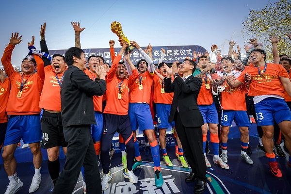 会当凌绝顶!11年后,山东泰山再次站上了顶级联赛冠军领奖台,继1999年、2006年、2008 年和2010年后,胸前又多了一颗星,“5星泰山”,笑傲江湖。