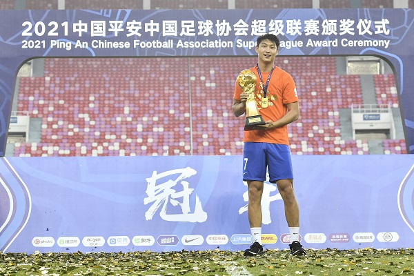 2021中超联赛22轮,郭田雨是唯一全勤的泰山队员,18次首发,4次替补,打进10球,和张玉宁并列本土球员射手榜第一,更重要的是,他已有中超冠军傍身。