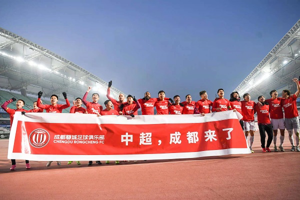 今年的中甲联赛全程封闭进行,时间跨度大,蓉城队又是全部客场比赛,对于蓉城队中有家庭的老队员来说非常艰难。长时间见不到家人,尤其是对孩子的牵挂,这可能是这群父亲最煎熬的阶段,“从2018年球队成立,提出5年冲超时,我就想着能跟球队一起回到中超。今年韩国教练组来了以后训练量很大,我们几个老队员都扛了过来。在中期球队成绩有波动的时候,我们从来没放弃,一直坚持,感觉能冲超就是完成了职业生涯最后的、最重要的事情,相信到了中超平台,俱乐部会吸引来更多优秀的年轻球员接班。”蓉城队长甘锐赛后带着笑容接受了采访。这场与大连人队的决战,甘锐带伤打着封闭出场比赛,作为一名老将一直拼到最后阶段,才主动示意教练席换人。作为一名重庆人,甘锐为成都足球贡献了自己最后的力量,上一次拯救四川足球的也是重庆人——姚夏。