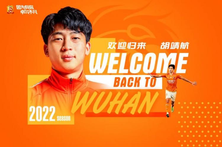 26日,武汉队官宣胡靖航加盟。胡靖航1997出生,出自根宝青训,2017赛季租借加盟河南建业,出场27次,有3个入球4个助攻;在回归海港之后,他并没有高光的表现;2020赛季租借加盟武汉,出场时间再次大幅度上升,打进3球;2021赛季再次回归海港后陷入了困境,因此胡靖航选择了离开海港,加盟武汉。