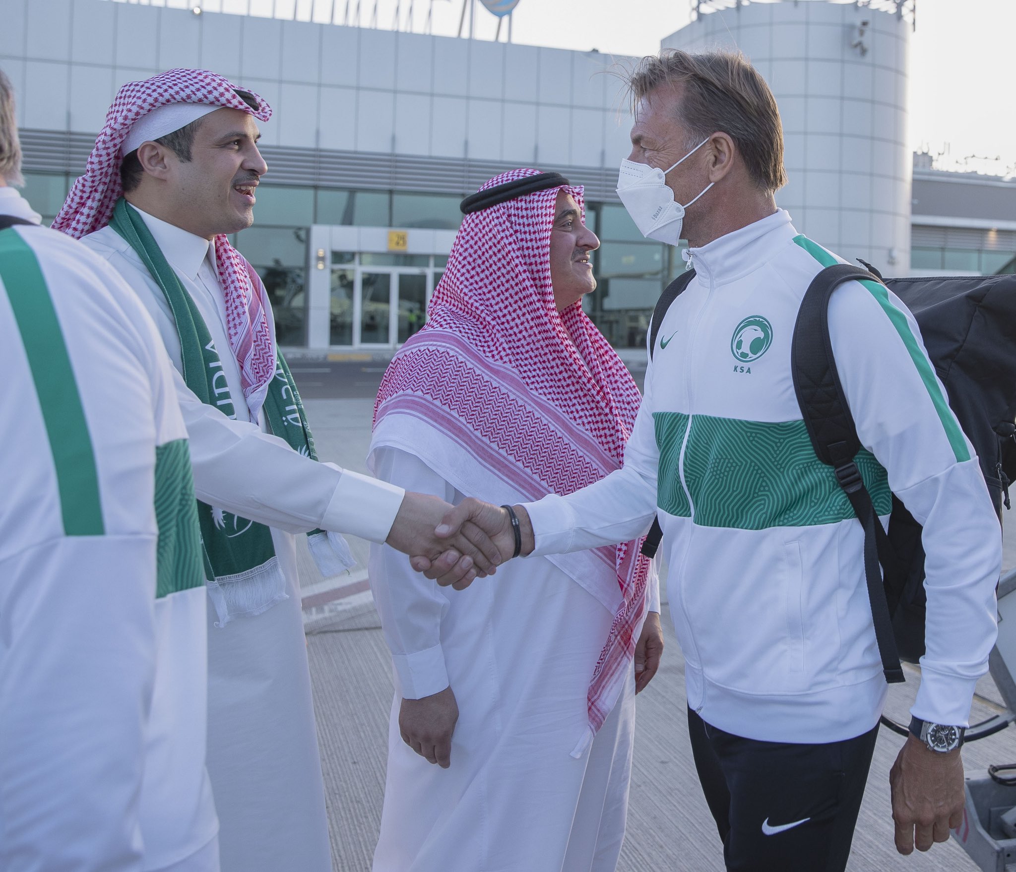 除了身体不适未能随队前往阿布扎比的替补前锋布赖坎,沙特队其余25人均出现在了阿布扎比的酋长皇宫酒店。沙特队的法国主帅海纳赫在接受《与瓦利德一起》节目采访时强调,沙特队不能掉以轻心,“对中国队的比赛不会轻松,不过,我有信心和球员们一起取胜,晋级世界杯决赛圈。”他表示,球队有5名出色的后卫,足以应对剩余的两场12强赛,“我们不会有任何问题,尽管集训地与比赛地的距离不短,但就像我说的那样,我们会竭尽全力,因为球队尚未确保出线资格。”